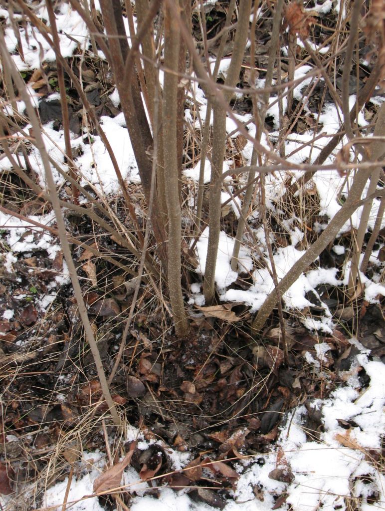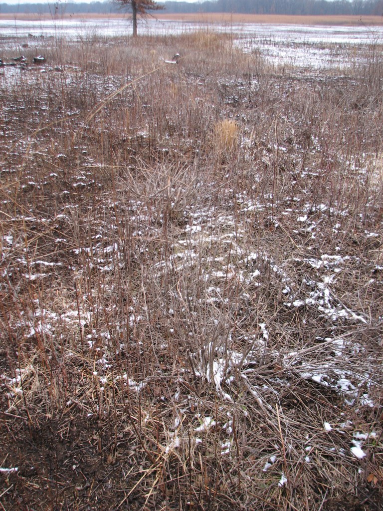 This image shows Asian bush honeysuckles that were cut at ground level. This was probably done when trees were cleared from this area. Many woody species sprout vigorously when cut. After brush mowing, the ideal time to treat Asian bush honeysuckle with herbicide is in April after they have sent up green sprouts, but before other species have started growing. This timing will minimize the impact to other species from the vapors of triclopyr ester. In years when the prairie is not burned, triclopyr ester in basal oil can be applied throughout the entire dormant season. However, fire has likely top killed these bushes so at this point cutting them to the ground and treating the stumps would be the best course of action.