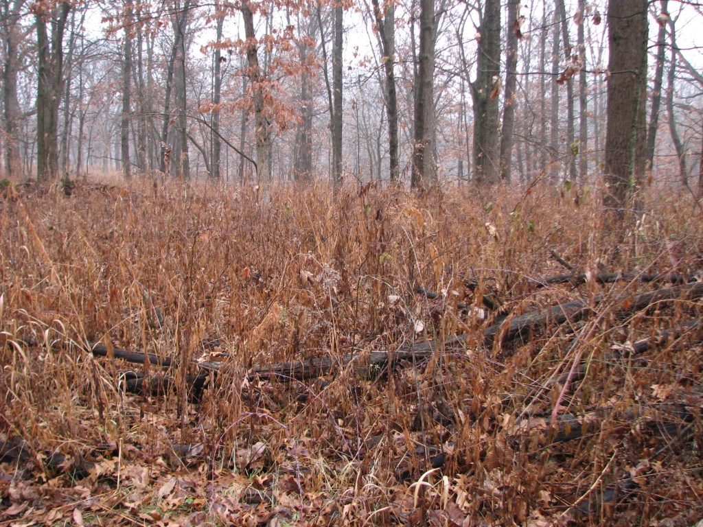 Around this dead tree is thick common buckthorn and some autumn olive.