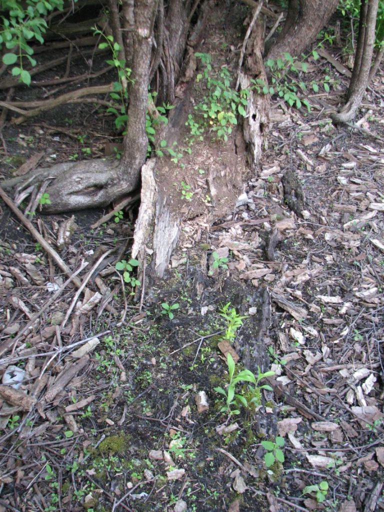 After control work occurred on common buckthorns, lots of buckthorn seedlings were growing on this decomposing log. The common buckthorn seedlings were able to grow because of the increased sunlight. Common buckthorn is known to alter soil making it higher in nitrogen favoring further invasion. I wanted to see if common buckthorn could establish on the low-nitrogen environment of a decomposing log.