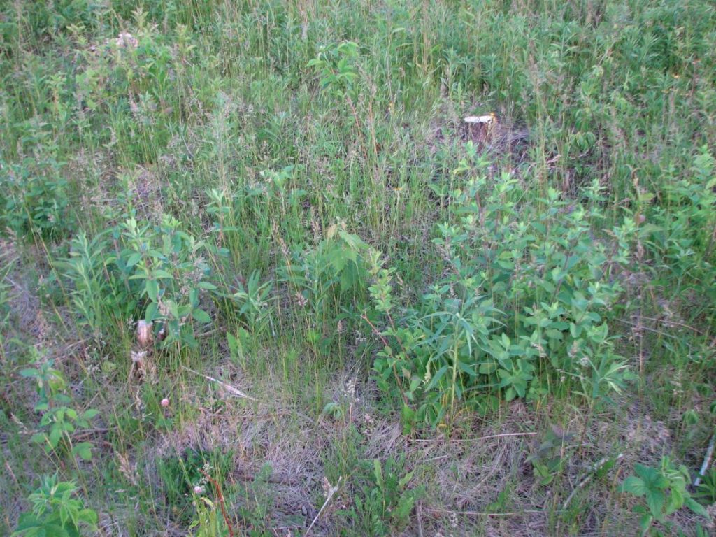 The above photo is from the area titled “Tree Removal to Expand Prairie” on the map from the post titled “Poplar Creek on 1/8/2023.” The area shown in the photo is south of the trail. On the post titled, “Poplar Creek on 4/30/2023,” I wrote “In the center of the southern portion of this area there were patches that were dead. This indicates these dense areas of woody invasive species that had been mowed had also been sprayed.” The common buckthorn has not sprouted. However, Galium aparine has grown in this area. This indicates enough herbicide was applied to control the common buckthorn without preventing other plants from establishing the following year. This can often be a difficult balance to achieve.