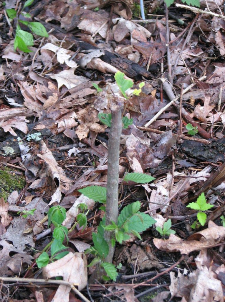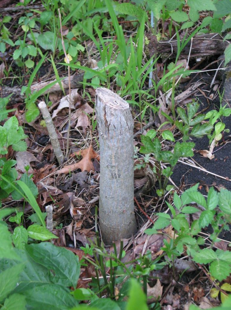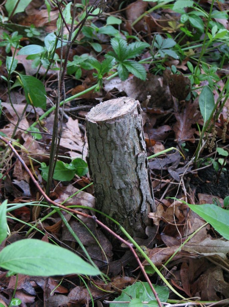 This stump, marked as being treated, also looks dead. However, when I looked closer, I could see sprouts starting to grow out of the base. This is the reason I must wait a full year before evaluating herbicide application results.