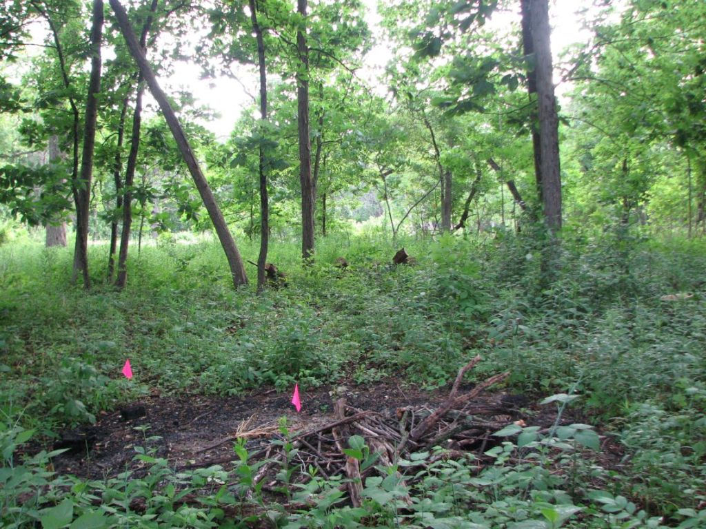 South on 6/11/2023: In this image you can see where the vegetation is thinner near the burn scar in the area where lots of small stems were treated versus farther away. This is from off-target damage when the triclopyr ester is splashed off the cut stumps during rain. I checked the National Weather Service weather data and the Chicago area received rain three days after herbicide was applied. The damage visible here is consistent with the level of damage I have observed when rain occurred three days after I have applied triclopyr ester in basal oil. The longer until rain occurs after triclopyr ester in basal oil is applied the less damage will be observed up until about a week.