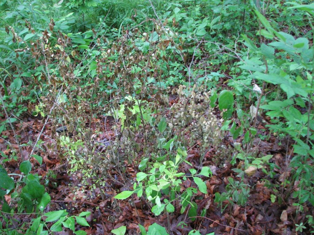 As I continued to walk, I saw more multiflora roses which had apparently received a foliar herbicide application. I am surprised foliar application would be used in an area with Nature Preserve protection. However, off target damage appeared minimal.