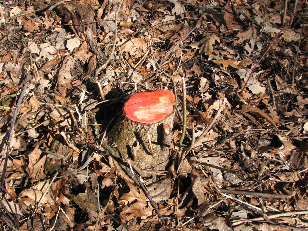 Today I revisited the area north of Camp Alphonse which I had wrote about on the post titled, “Deer Grove On 2/11/2023.” Triclopyr ester (Garlon 4) in basal oil had been applied to the cut surfaces of stumps with a mini-paint roller.