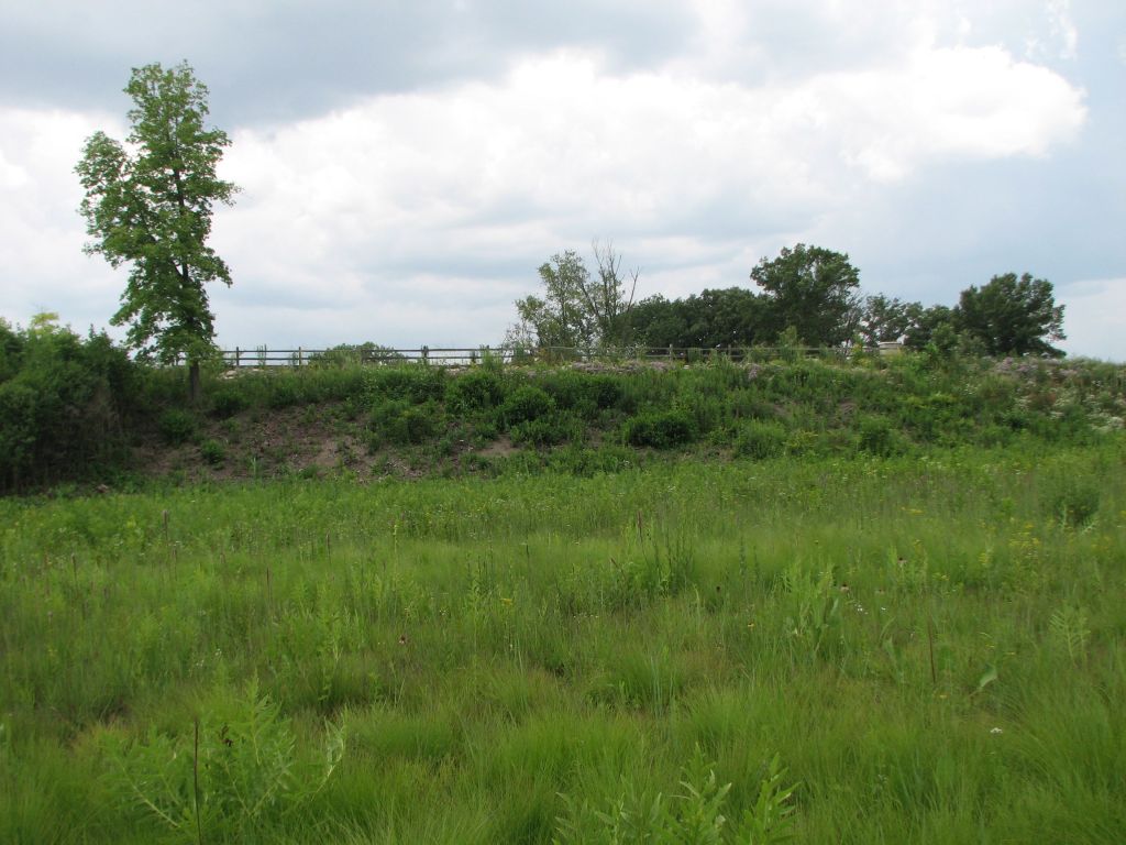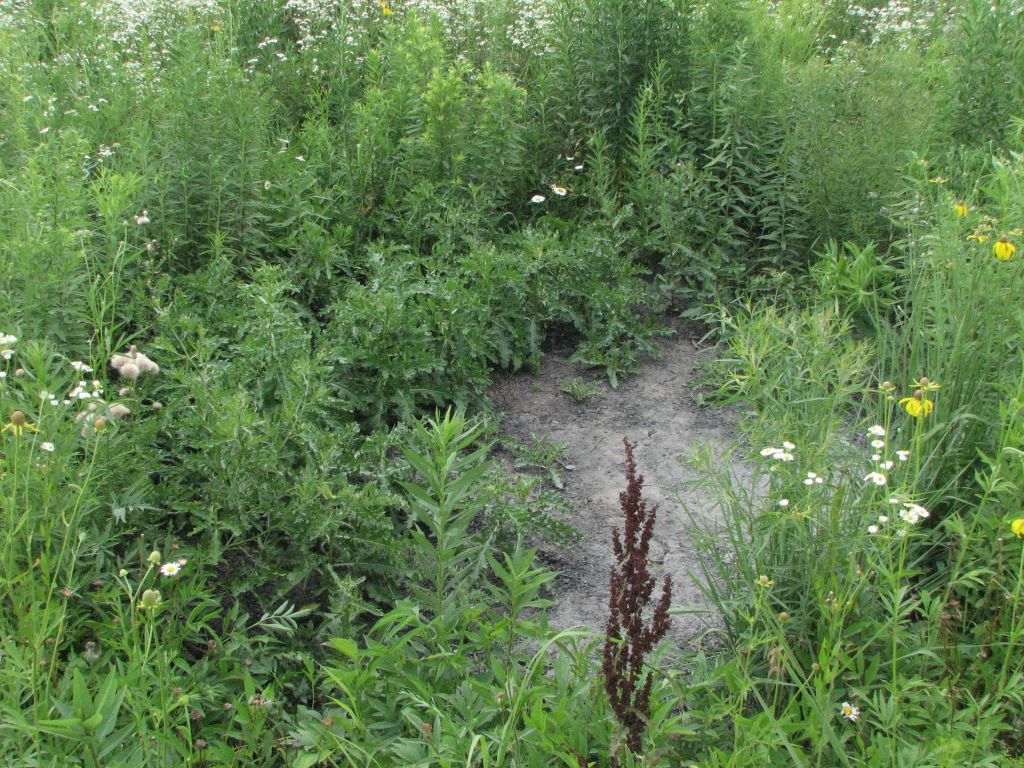 The same view as above but taken on 7/22/2023. The slope on the right has typical early successional vegetation like wild bergamot. I also noticed a lot of common mullein on this slope. I only see common mullein where herbicide has recently been applied.