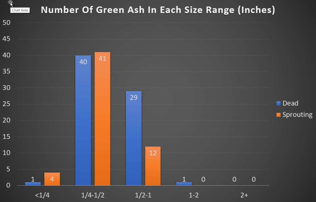 There were lots of small green ash (1/4 to 1 inch in diameter).