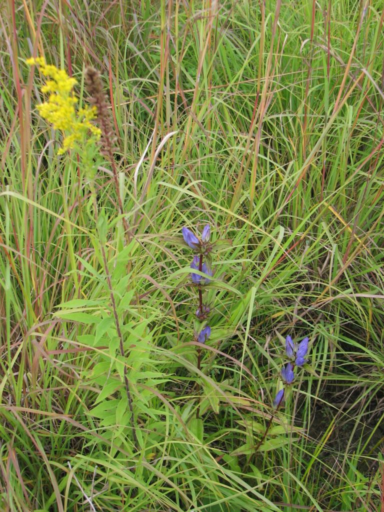 Riddell’s goldenrod, bottle gentian, cream gentian, stiff gentian, cardinal flower with Helen’s flower, great blue lobelia, swamp aster, a purported hybrid between New England aster and swamp aster, ladies’-tresses orchid, turtlehead, swamp lousewort, slender leaved false foxglove, grass-leaved goldenrod, dark-scaled sedge, prairie dropseed with golden Alexanders