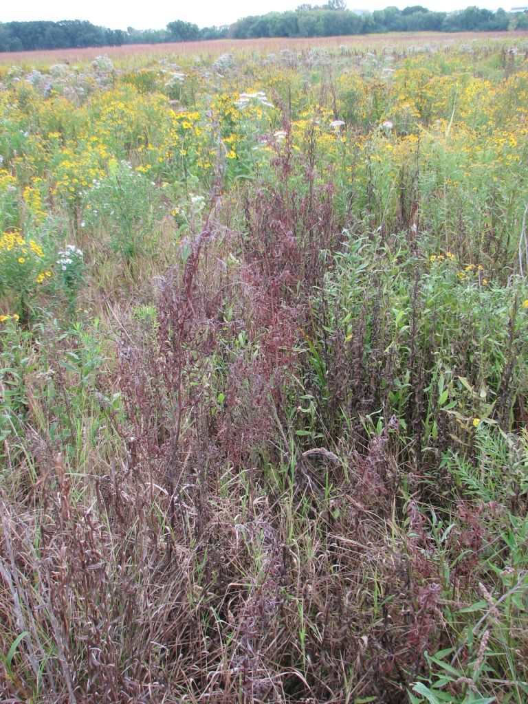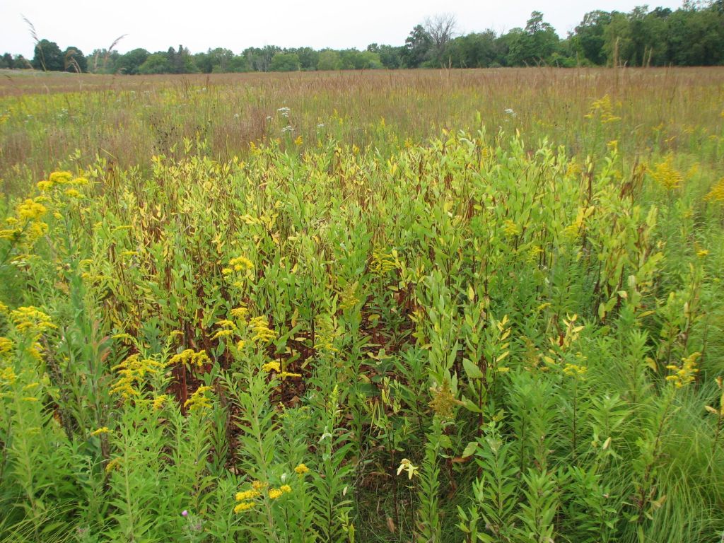 This image was taken in the unseeded old field area near the southwest corner of the 160 prairie reconstruction. This looks like an area where crown vetch was sprayed. I hope a method that causes less damage to surrounding vegetation is used when treating crown vetch in the prairie reconstruction.