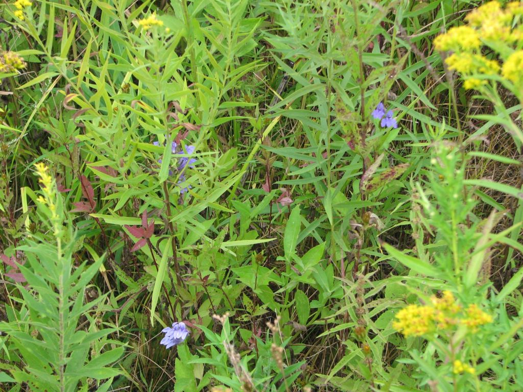 Short plants of Great Blue Lobelia (Lobelia siphilitica).