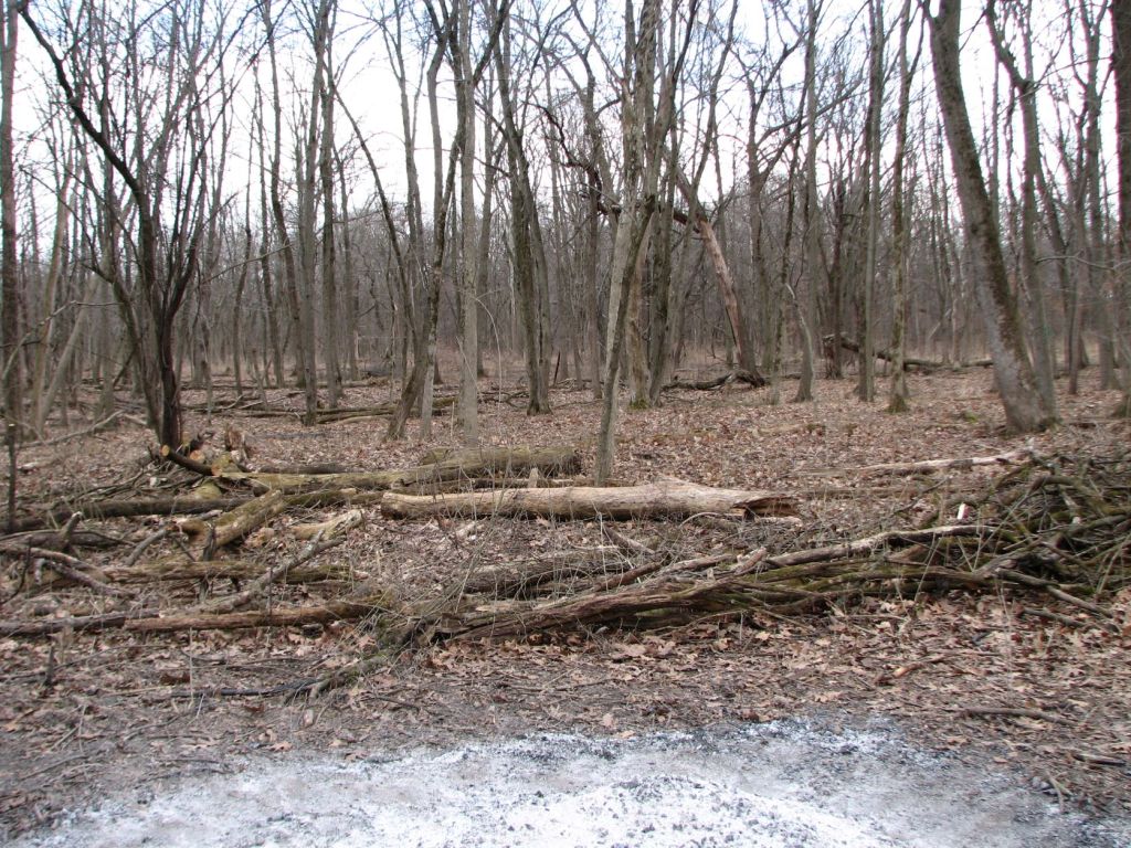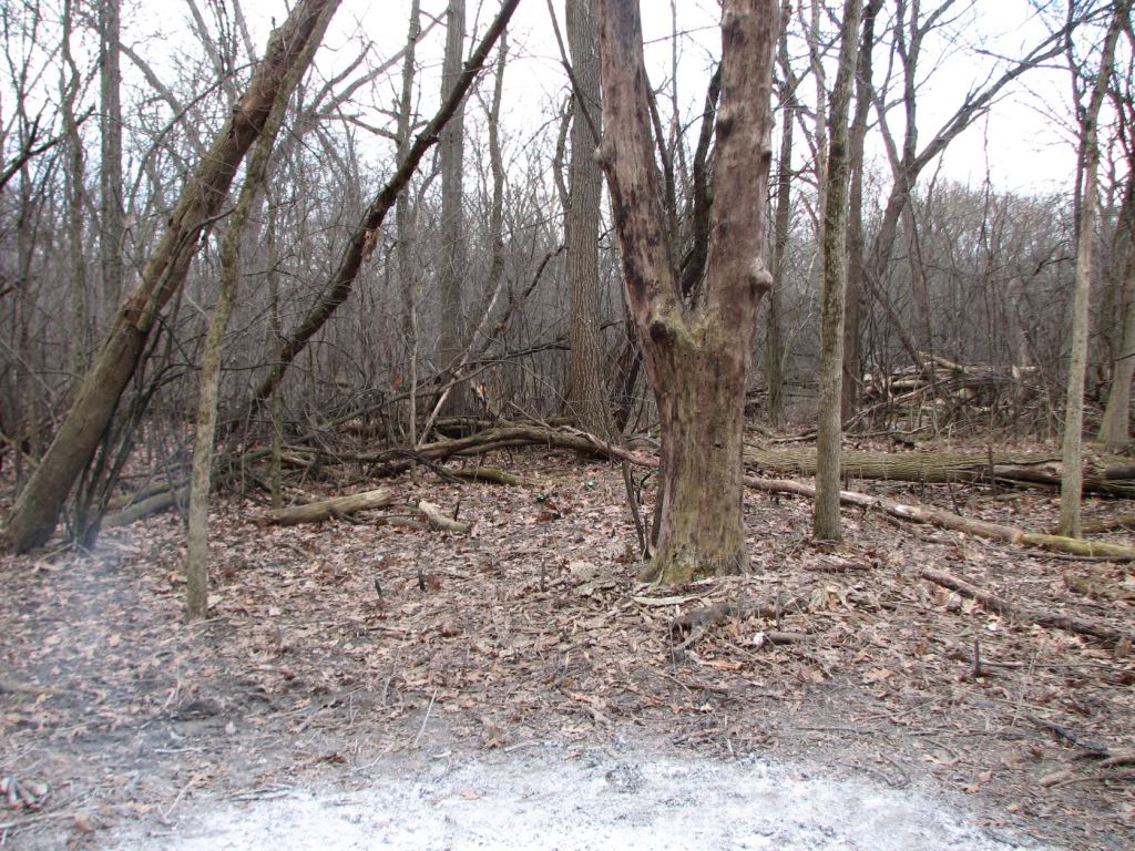 The above map from my earlier blog post “Glenview Woods and Harms Woods 3/18/2023” with new burn scars added to the map and arrows pointing to these burn scars from the labels “New.”