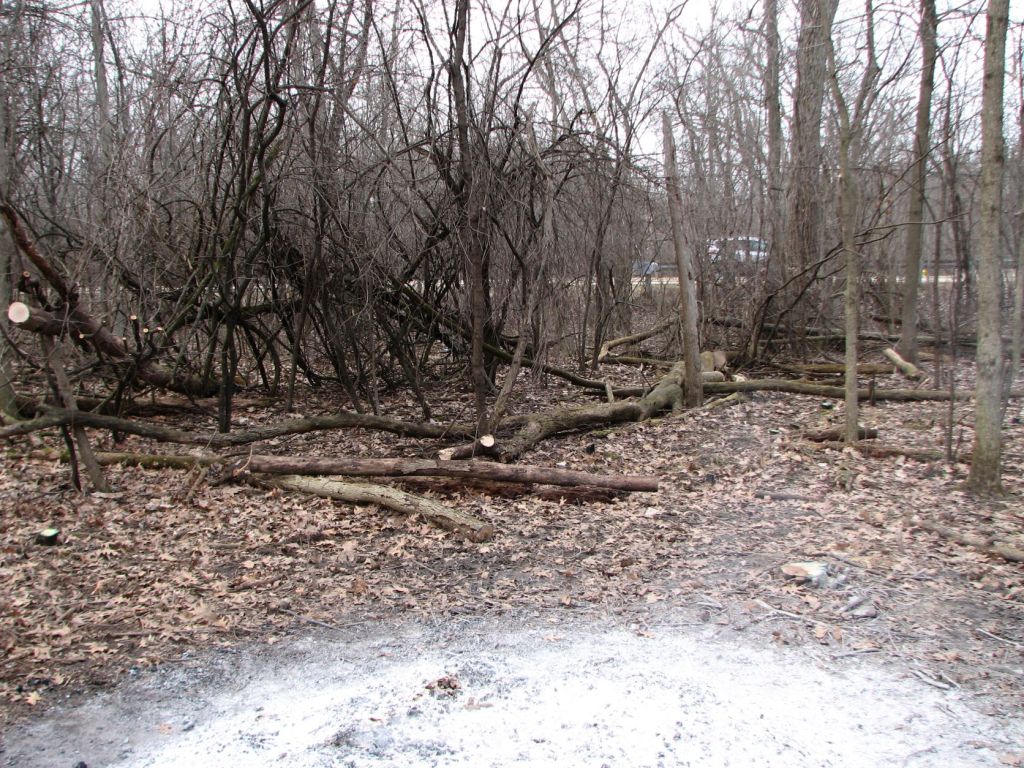 Looking north on 11/19/2023 – No logs were left near Glenview Road. I normally like to see logs left. This provides for habitat for animals and creates a location for native plants to grow that need high-carbon substrates (decaying logs) rather than non-conservative or invasive species that prefer high-nitrogen substrates (any soil under where common buckthorn has recently been cleared). The logs were probably all removed from this area so drivers on the road do not see burning logs after a prescribed burn. People tend to inundate the local fire department with calls if they see any fire. Removing logs near roads is understandable when it impacts public relations.