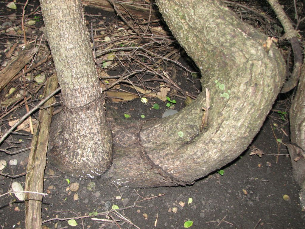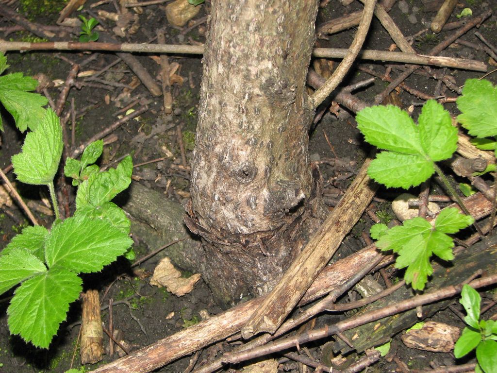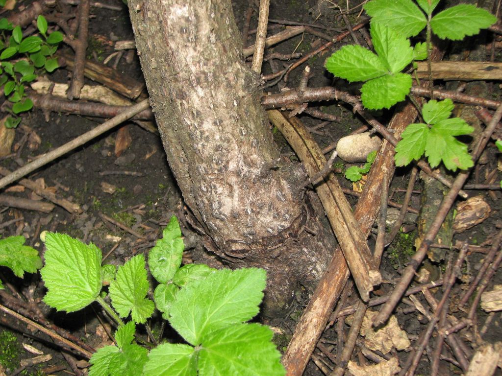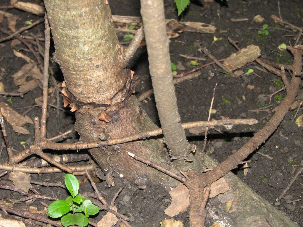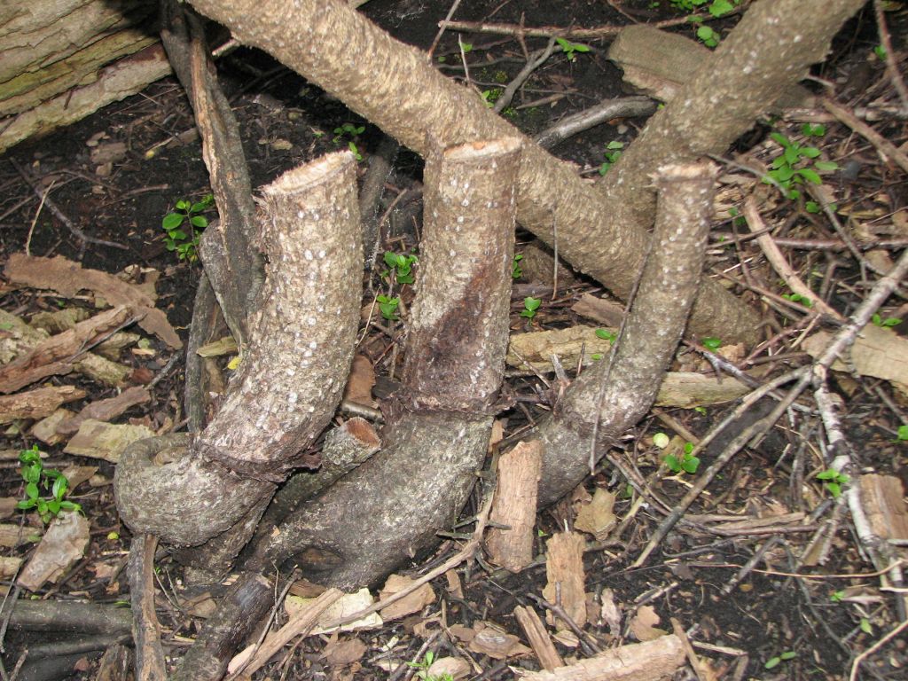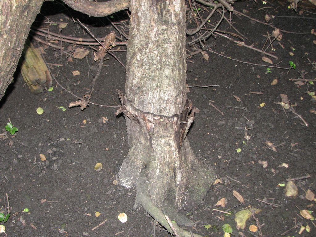 I was able to locate and capture images of 14 of the 16 common buckthorns that had each stem frilled, but not cut, and 26 active ingredient glyphosate applied to each frill. Of all these common buckthorns, only the largest one had some epicormic sprouting on one branch. See the last image to view the epicormic sprouts.