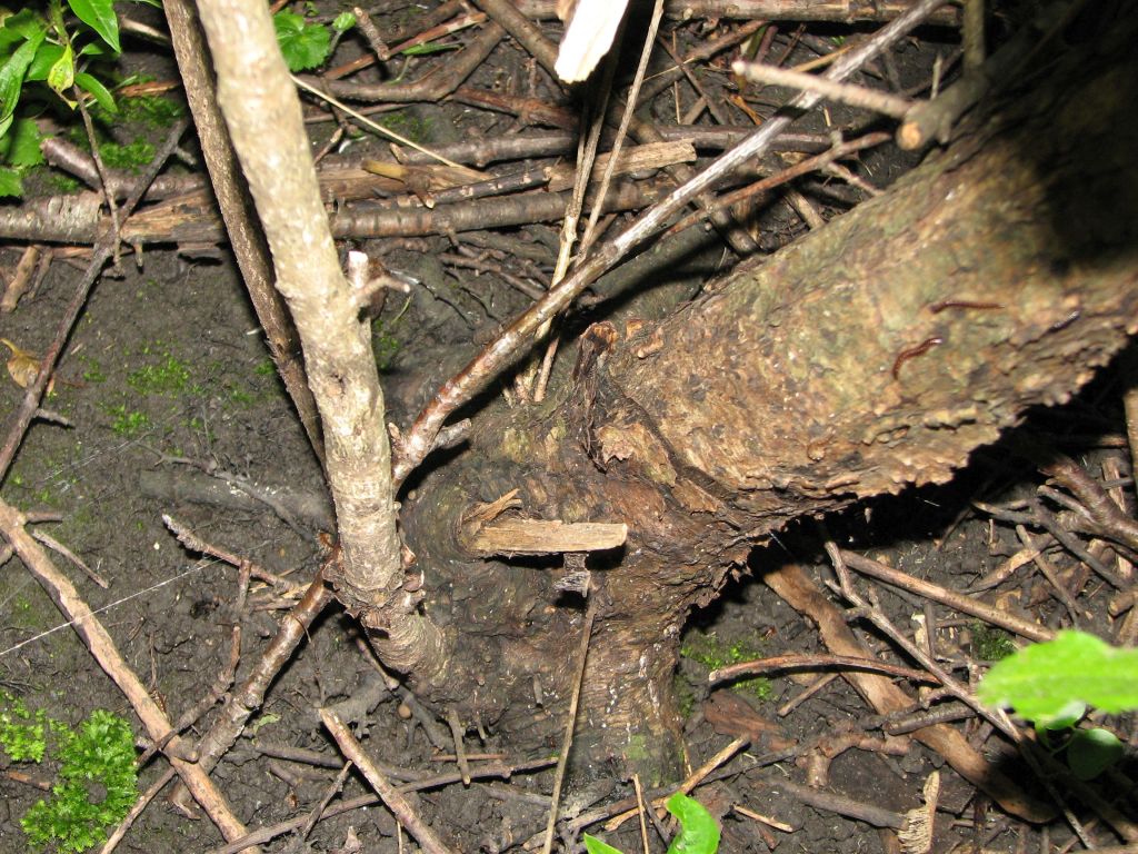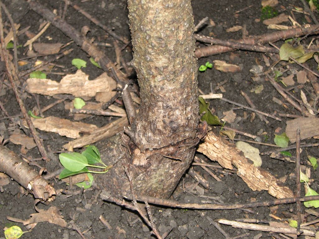 On November 5th of last year, I cut the stems on 13 variously sized common buckthorns (Rhamnus cathartica) with a combined total of 26 stems. I frilled each of these stems then applied 26 percent active ingredient glyphosate to each frill. For the second part of the experiment, for a control group, I frilled 16 variously sized common buckthorns with a combined total of 29 stems, without cutting the stems. I applied 26 percent active ingredient glyphosate to the frills around these uncut stems. This control group is my standard method and one I know is near 100 percent effective.