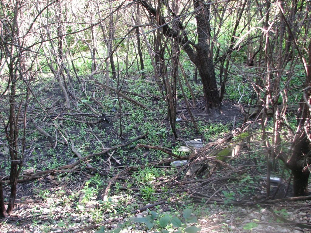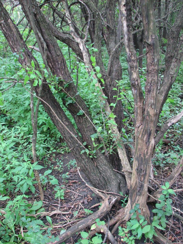I will not be attempting to restore the core of the dead buckthorn thicket into prairie. I do not think such an attempt would be successful for a considerable amount of time. My goal is to first control the common buckthorns, then the common buckthorn seedlings, and finally any crown vetch (Securigera varia) that develops later while letting native weedy species dominate as the larger common buckthorns decompose. I will put my prairie restoration efforts into the edge of where the common buckthorn thicket has been controlled. Soil on the edges of the thickets has been less damaged and restoration is more likely to be successful.
