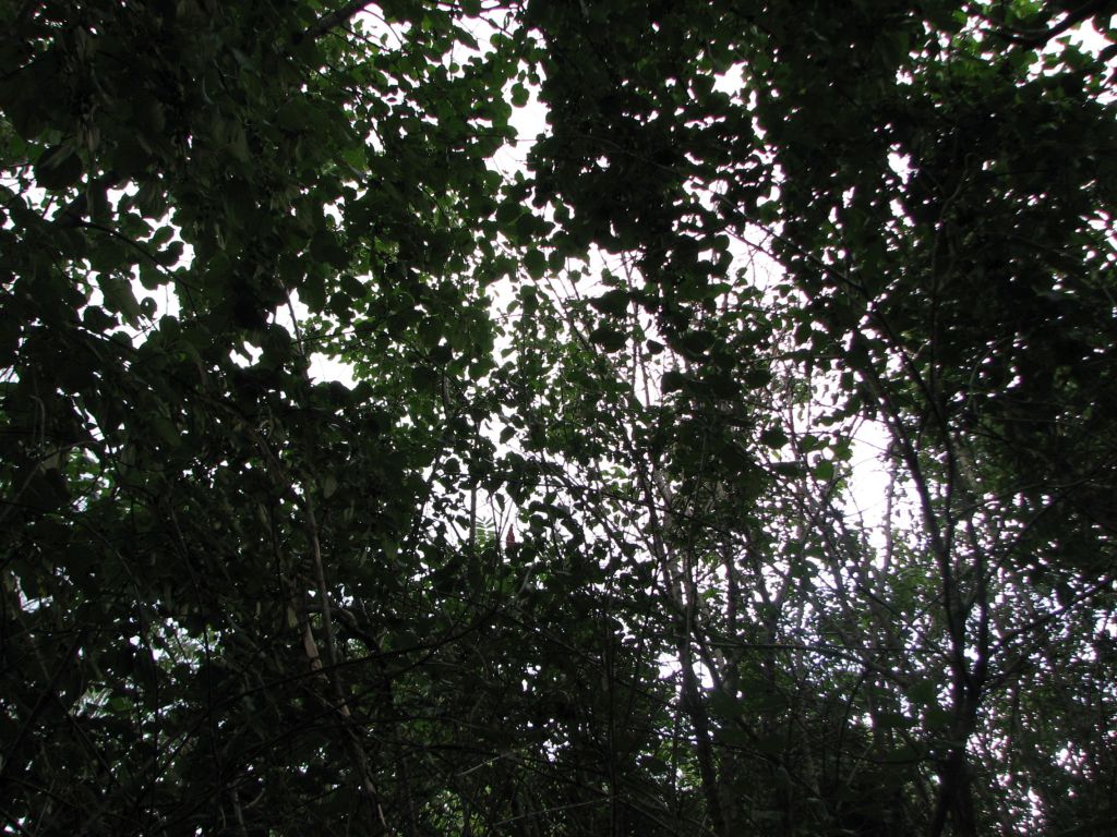 This is the view toward the sky from the edge of the above shown controlled common buckthorn thicket on July 21st, 2024. The common buckthorns have all been killed in this treatment area.