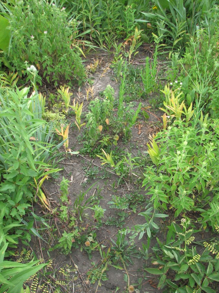 Area becoming bare soil with weedy species colonizing.