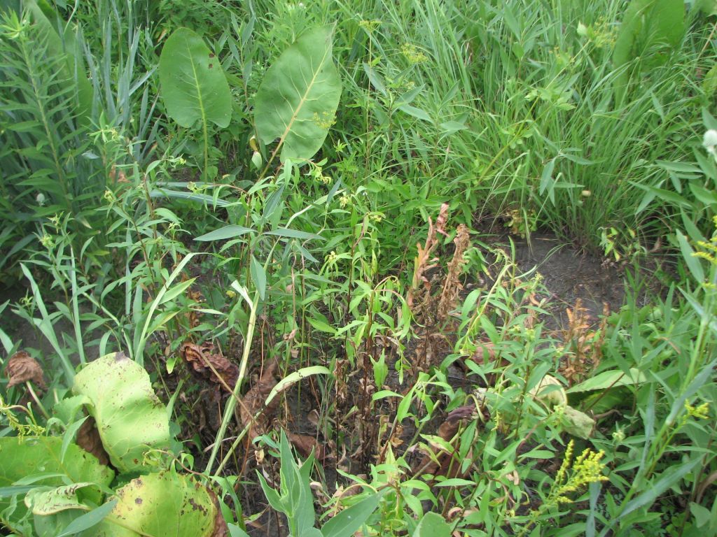 The only Lysimachia ciliata I saw showing some herbicide impacts (curling leaves).