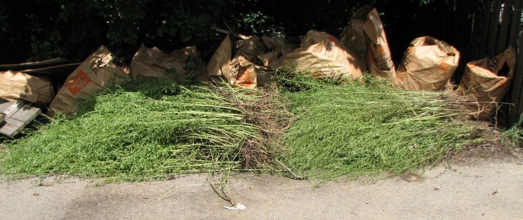Image of white sweet clover I had removed by the roots. I did this every other day while the sweet clover were blooming and continued bagging plants in other areas of the preserve until the seed had dropped. I was able to eliminate sweet clover from a two acre prairie restoration area at the nature sanctuary where I was volunteering within three years.