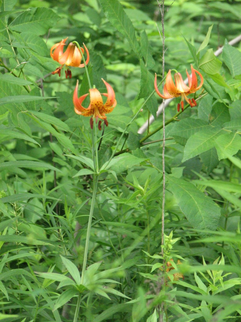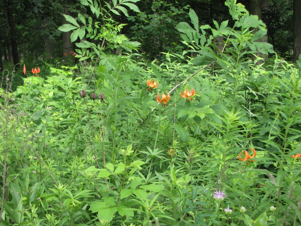 Michigan lilies, Lilium michiganense, on the edge of the woods.