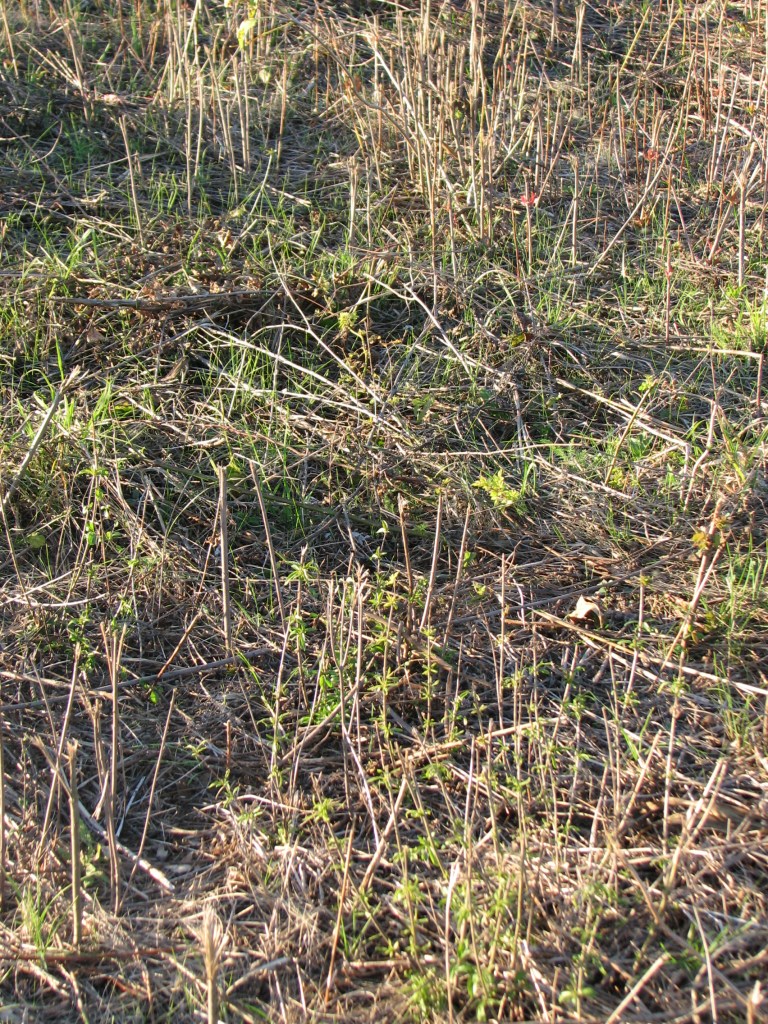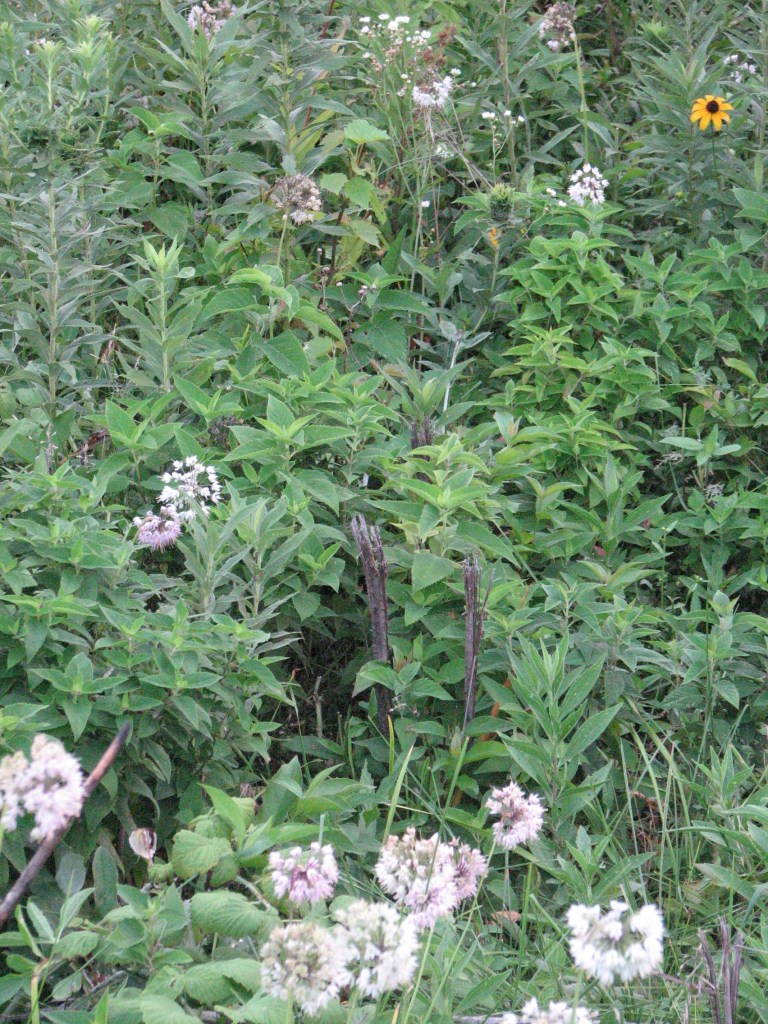 View of gray dogwood stumps. There were a lot of gray dogwood stumps with no evident sprouting. The stumps below have sprouting, but the sprouts are mostly over topped by the prairie plants.