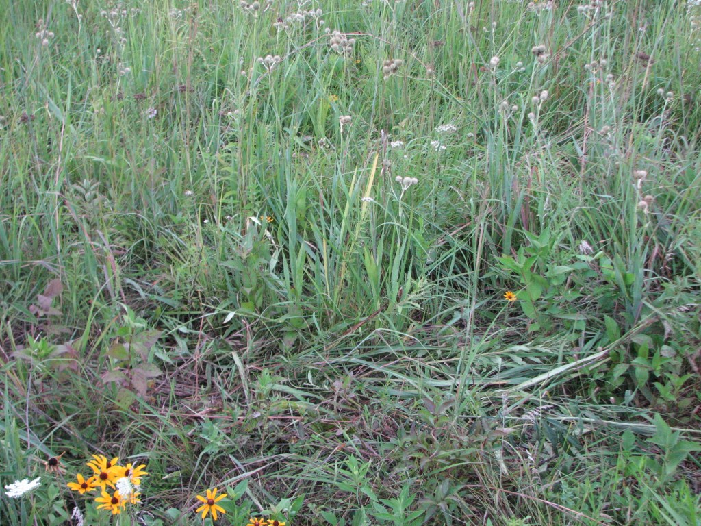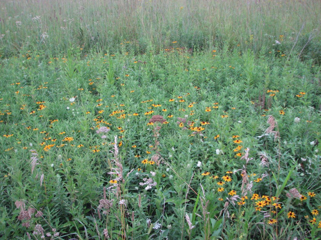 View looking into the mowed area on the opposite side of the trail. There are lots of black-eyed Susans (Rudbeckia hirta) where mowing occurred on this side of the trail.